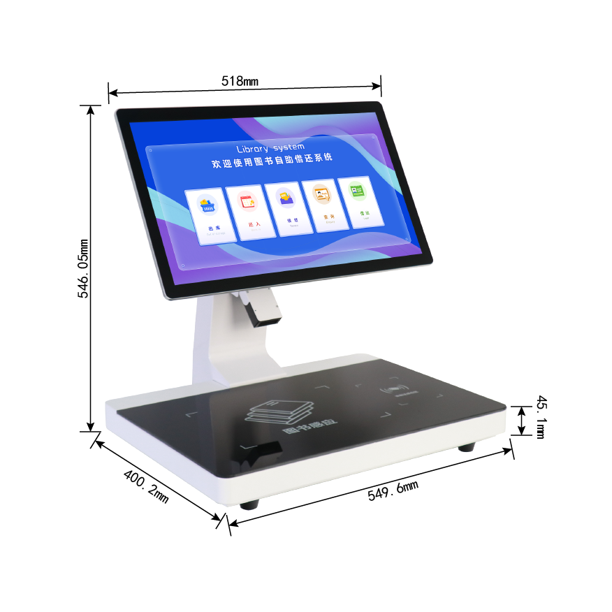 一体式馆员工作站是一种新型的智能化设备,配备触摸显示屏或简单操作的人机交流界面、图形界面,通过协议或其他网络及专用接口与图书馆自动化系统数据相连接,馆方工作人员对图书进行标签加工时,使用设备对粘贴在图书上的RFID开元网页版_开元(中国)进行加工,通过条码扫描器扫描图书上的条形码,同时识别图书上的开元网页版_开元(中国),对开元网页版_开元(中国)和图书条码进行标签初始化操作。图书加工完成后上架,读者可以通过自助借还设备对图书进行自助借还流通操作。平时馆方工作人员不用设备进行图书加工时,可以切换到自助借还软件功能,软件功能切换后,设备可作为自助借还机使用。